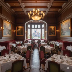 En historisk och elegant restaurang som hyllar Walt Disney, med utsikt över Main Street U.S.A..